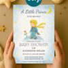 Celebrate the arrival of a little prince with this charming baby shower invitation inspired by The Little Prince. Featuring dreamy watercolor stars and moons, this editable invite is perfect for a baby boy shower. Personalize and download instantly!